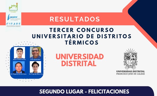 El pasado 14 de diciembre se dieron a conocer los ganadores del Tercer Concurso Universitario en Distritos Térmicos, organizado por el proyecto de Distritos Térmicos Colombia Fase II y el Centro de Investigación y Desarrollo de Acondicionamiento de Aire y Refrigeración – CIDARE. Este año, 6 Universidades aceptaron el reto de crear una herramienta computacional para evaluar diferentes fuentes de energía no convencionales (energía solar, energía eólica, biomasa, cuerpos de agua) aplicables a un distrito térmico.