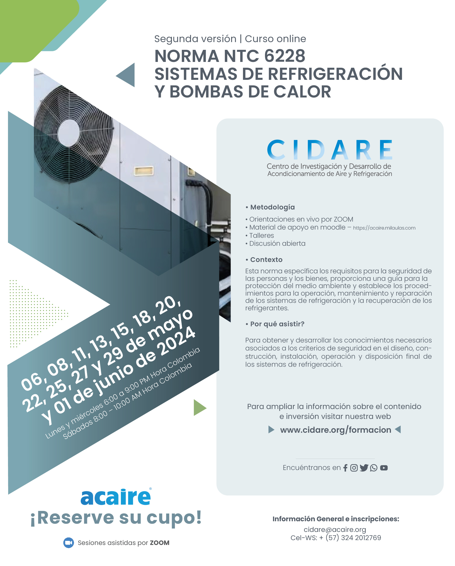 • La inscripción y pago deben hacerse mínimo tres (3) días antes del inicio, una vez ACAIRE confirme el inicio de la actividad.